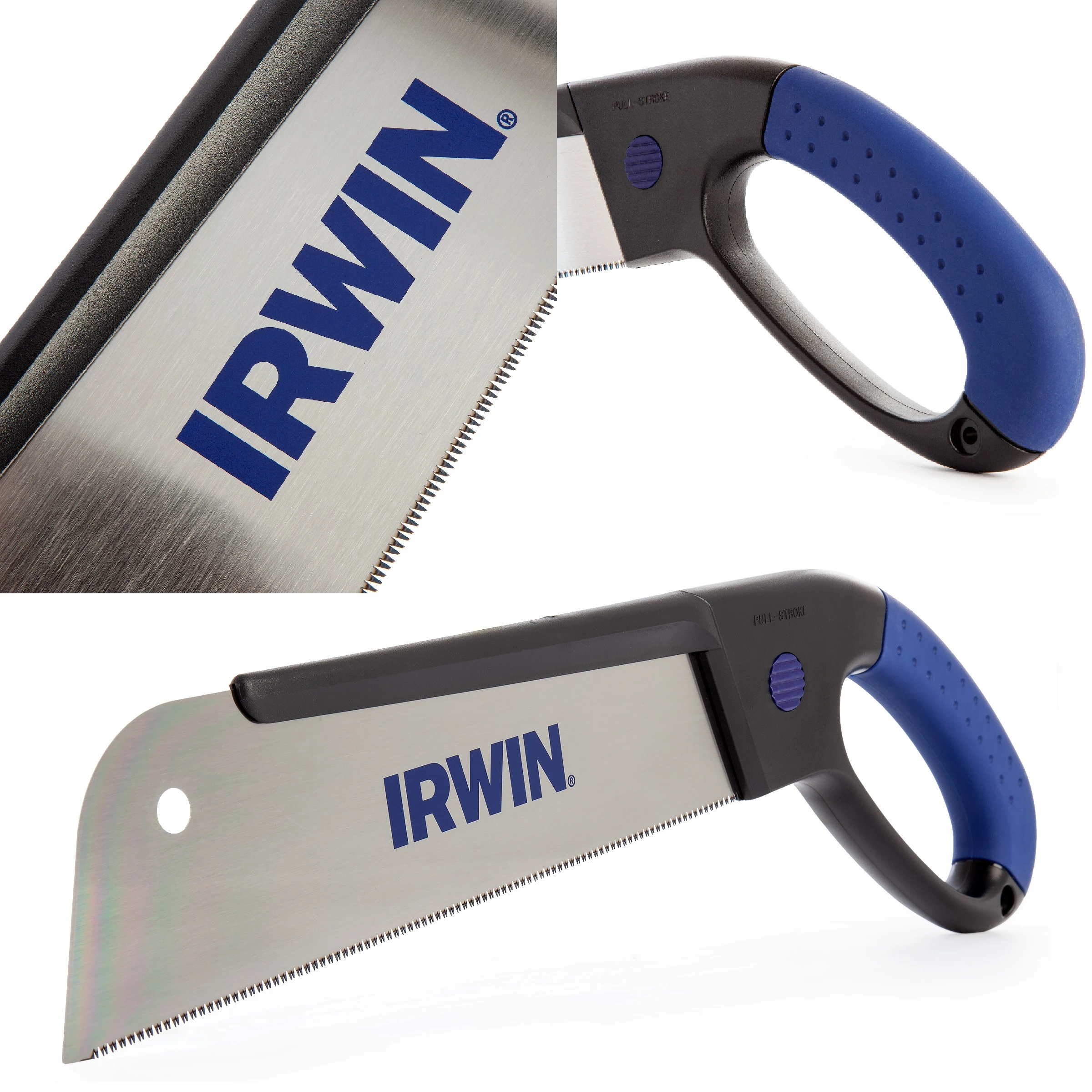 Ножівка японська для надточного різання 19TPI з обухом, IRWIN Професійна японська ножівка з дуже тонким полотном та обушком, призначена для високоточних столярних, столярно-ремонтних та модельних робіт. Підійде для обрізки врівень. Інструмент застосовується як для твердих порід дерева, так і для м'яких або тонких матеріалів - ДСП, фанеру, ламінат, пластик і т.п. Тонке та легке лезо зі спеціальною геометрією зубів та обушком, забезпечує абсолютно чистий зріз та чудову обробку при мінімальних зусиллях. Зуби, загартовані індукційним загартуванням, довше залишаються гострими, а тягове зусилля виключає заїдання і сприяє прямолінійному різу. Полотно забезпечене дрібними зубами 19 TPI та дуже гострими, для ідеально чистого та рівного. Інструмент має кнопку для роз'єднання полотна та рукоятки, що буде дуже зручною функцією як для транспортування інструменту, так і для заміни полотна. Довжина полотна – 270 мм Зуби на дюйм (TPI) - 19 Полотно із сталі. Пластикова ручка пістолетної форми зручна і не викликає втоми руки, крім того, місце захоплення гумове. Асортимент ножівок IRWIN ® Jack® є найкращими у своєму класі ручними пилками для сучасних професіоналів. Передова технологія зубів та ергономічна рукоятка ProTouch™ роблять ручні пилки IRWIN найкращим вибором для швидкості, простоти та якості різання.