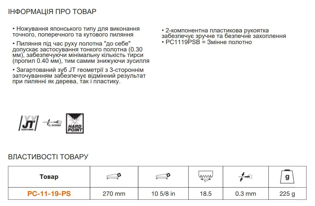 Ножівка по дереву BAHCO пасовочна універсальна 430 мм (PC-11-19-PS)