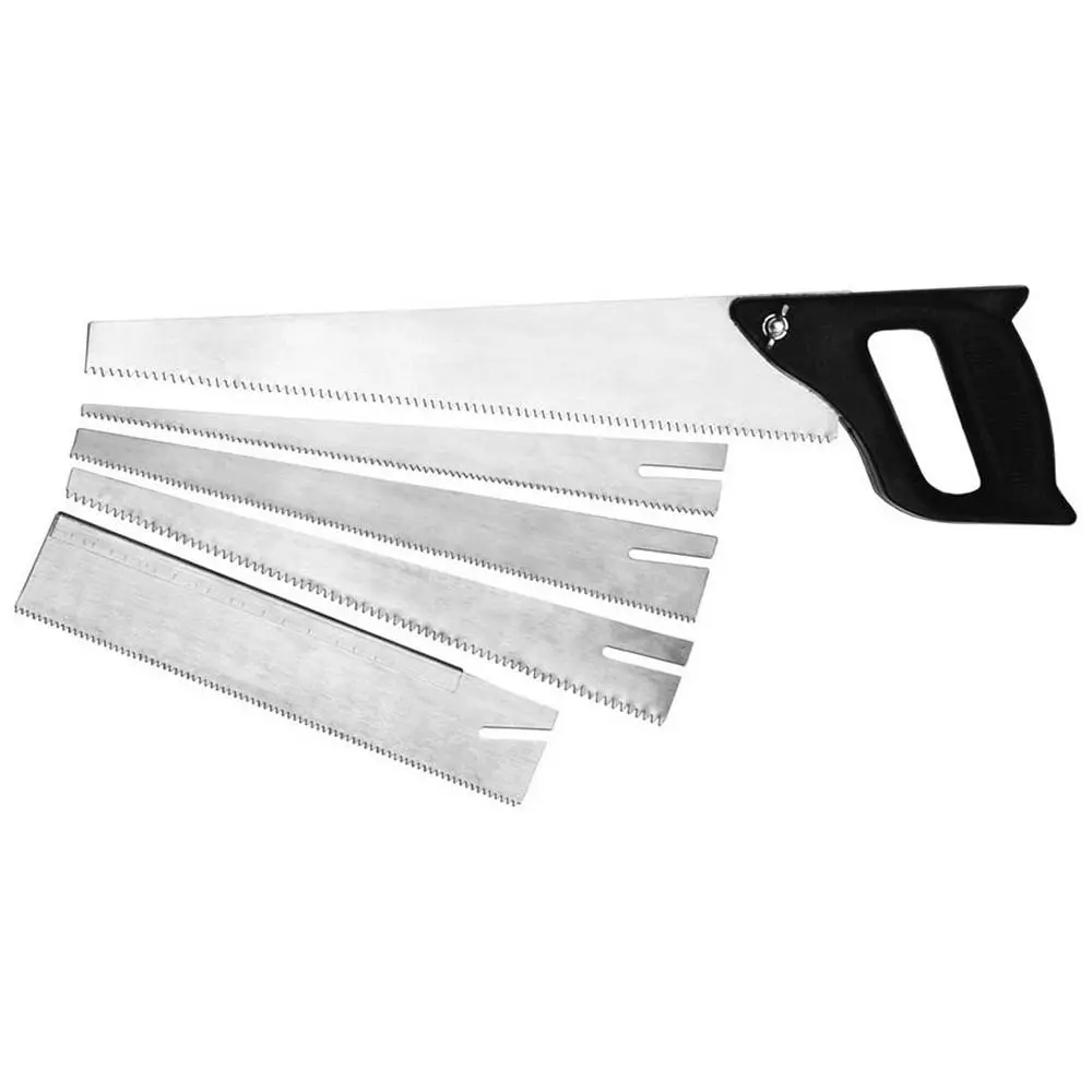 Інструмент поєднує в собі 5 різних пил, які мають різні функції та призначення: пила по дереву - 2шт, пилка для стусла - 1шт, гілкоріз - 2шт. Пила має полотна з двостороннім заточуванням для розпилу при русі ножівки «від себе». Рукоятка з пластику. Зуби не загартовані, що дозволяє неодноразово заточувати пилку. Призначена для роботи з деревиною м’яких і твердих порід. Полотна швидко та зручно змінюються, надійно фіксуються і пластиковій ручці. Інструмент зручний для зберігання завдяки своїй компактності та коштує значно менше, ніж 5 окремих пилок аналогічного функціоналу. Ідеально підходить для побутового використання домашнім майстром.