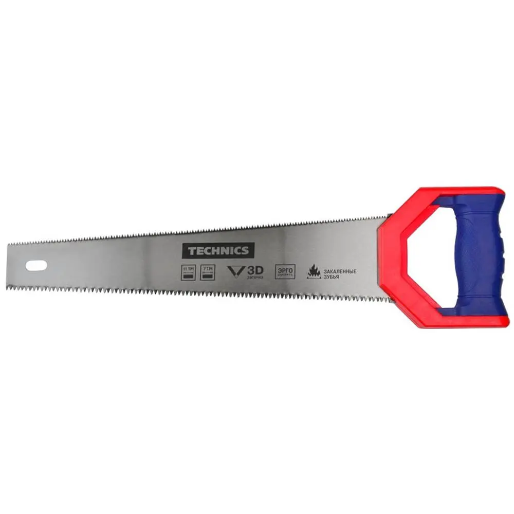 Пила по дереву двухсторонняя изготовлена ??из углеродистой инструментальной стали. Все зубья разведены и закалены. Имеет два вида зубов, с одной стороны 10 шт / дюйм разведены 2-х гранной заточкой, а с другой 7 шт / дюйм разведены с 3-х гранной заточкой, позволяет пилить в двух направлениях. Пила оснащена двухкомпонентной (пластик + резина) ручкой закрытой формы, предотвращает ее проскальзывание в руке. Такая пила по дереву подходит для изделий, которые необходимо пилить аккуратно и ровно. Предназначена для продольного и поперечного быстрого распила заготовок средних размеров из древесины мягких и твердых пород, ДСП, фанеры, ламината и ПВХ.