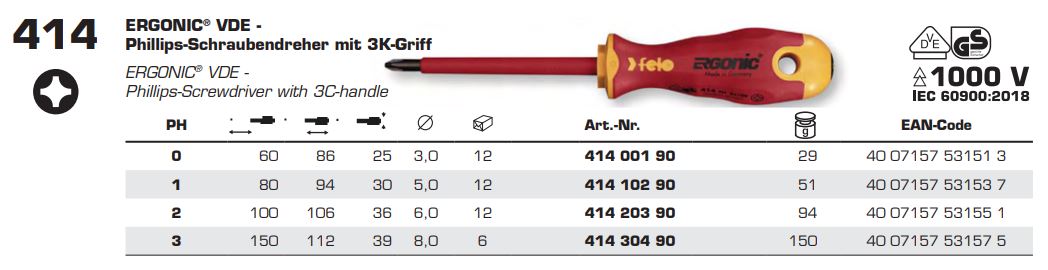 Викрутка діелектрична хрестова FELO ERGONІС VDE 1000V PH0х60х86 мм (41400190)