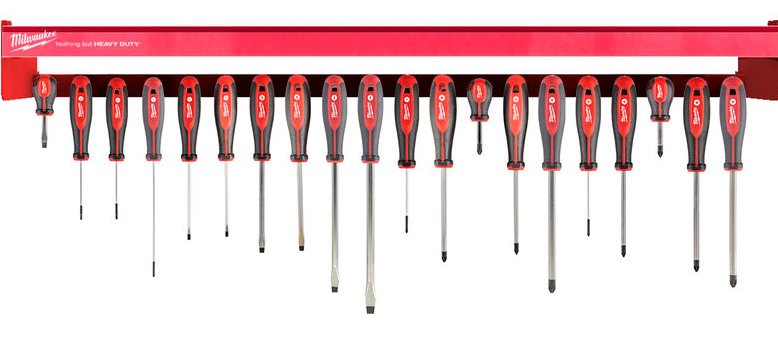 Планка на стенд з магнітними викрутками з тригранною рукояткою Тригранна рукоятка оптимізована під максимальний комфорт користувача та передачі високого моменту, що крутить. Перманентні ідентифікаційні написи дають змогу швидко знайти потрібний інструмент. Отвір для швидкого приєднання до страхової системи. Загартовані магнітні наконечники для максимальної міцності та утримання кріплення. Тригранний виступ на рукоятці запобігає скочування. Шестигранний стрижень для використання з ключем там, де потрібне підвищене зусилля.