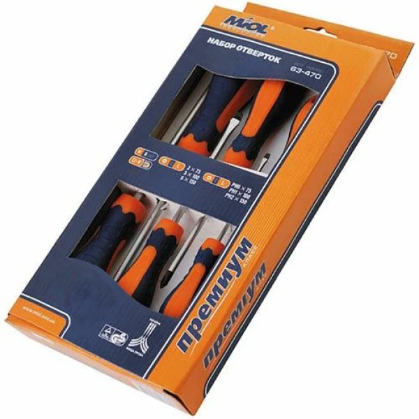 - Кількість предметів в наборі / пакуванні 6 шт. Тип шліца SL3×75, SL5×100, SL6×150, PH0×75, PH1×100, PH2×150 Твердість робочої частини 52 HRС -