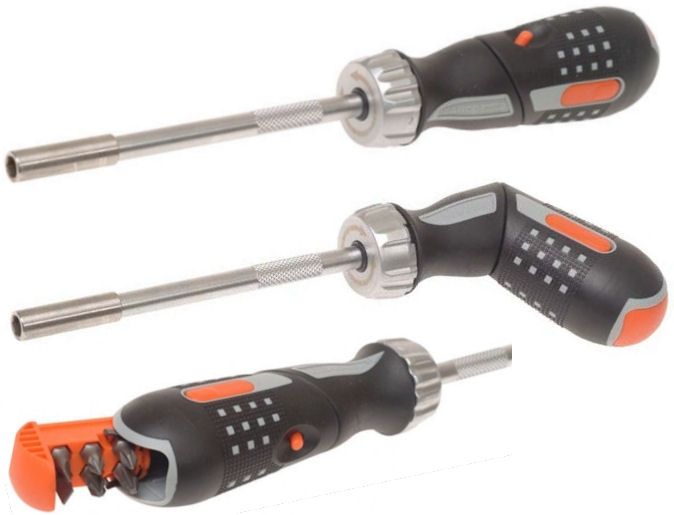 - Встроенный в рукоятку слот для хранения бит с фиксирующей кнопкой для быстрого доступа