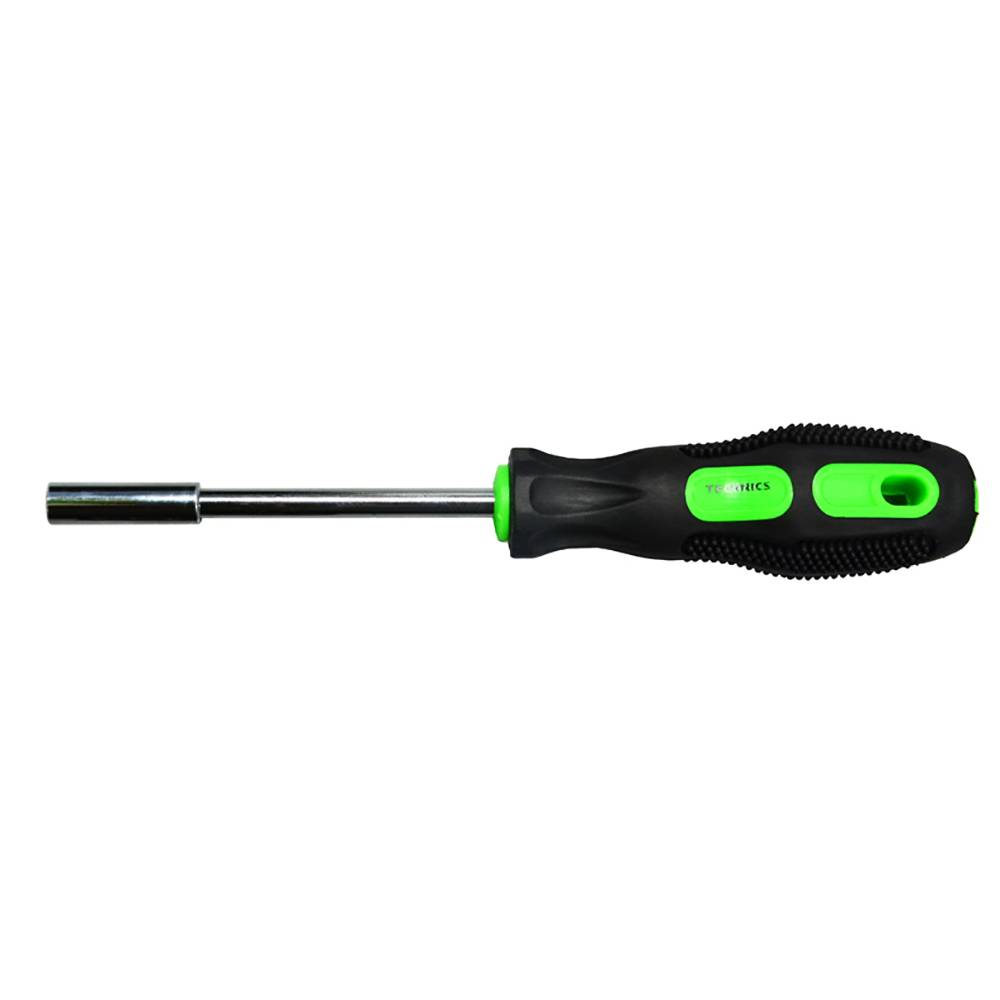 Тримач магнітний для шестигранних викрутних насадок, виготовлений з вуглецевої сталі. Має антикорозійне захисне хромове покриття. Зручна ергономічна двокомпонентна (пластик + гума) ручка запобігає ковзанню інструменту в руці під час роботи і має отвір для підвішування. Використовується із змінними насадками для викручування і закручування гвинтів, шурупів і інших деталей різними типами шліца. Має шестигранний хвостовик і магніт, який надійно тримає насадку в утримувачі. Тримач підходить під шестигранні викрутні насадки будь-якої довжини (код 47-107, 47-108, код 47-117...47-158).