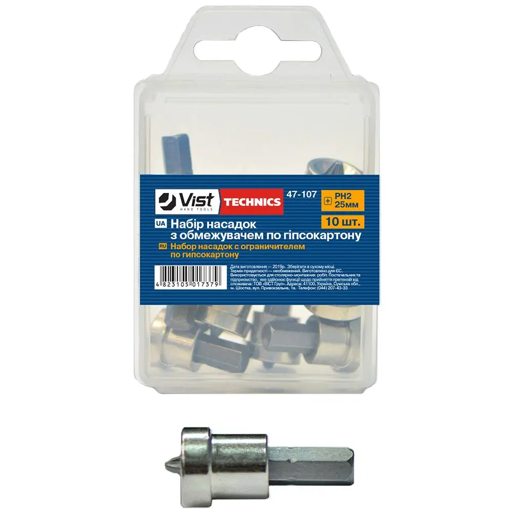 Набір насадок з обмежувачем по гіпсокартону, PH2, 10шт., 25мм Technics | 47-107