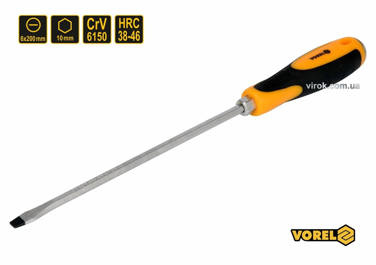 VOREL Викрутка плоска ударна з 6-гранним стержнем : SL6 х 200 мм, HRC 38-46, Cr-V | 62164