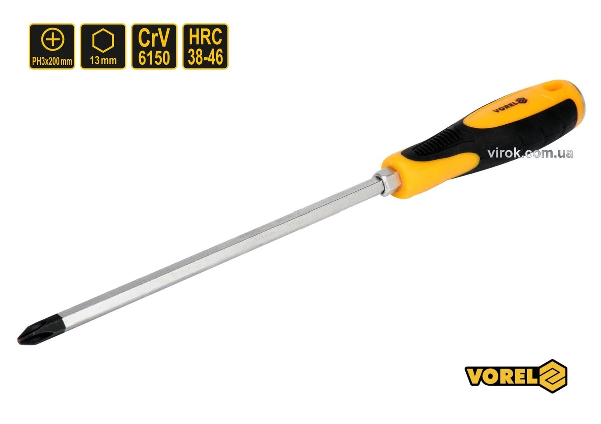 VOREL Викрутка хрестова ударна з 6-гранним стержнем : PH3 х 200 мм, HRC 38-46, Cr-V | 62177