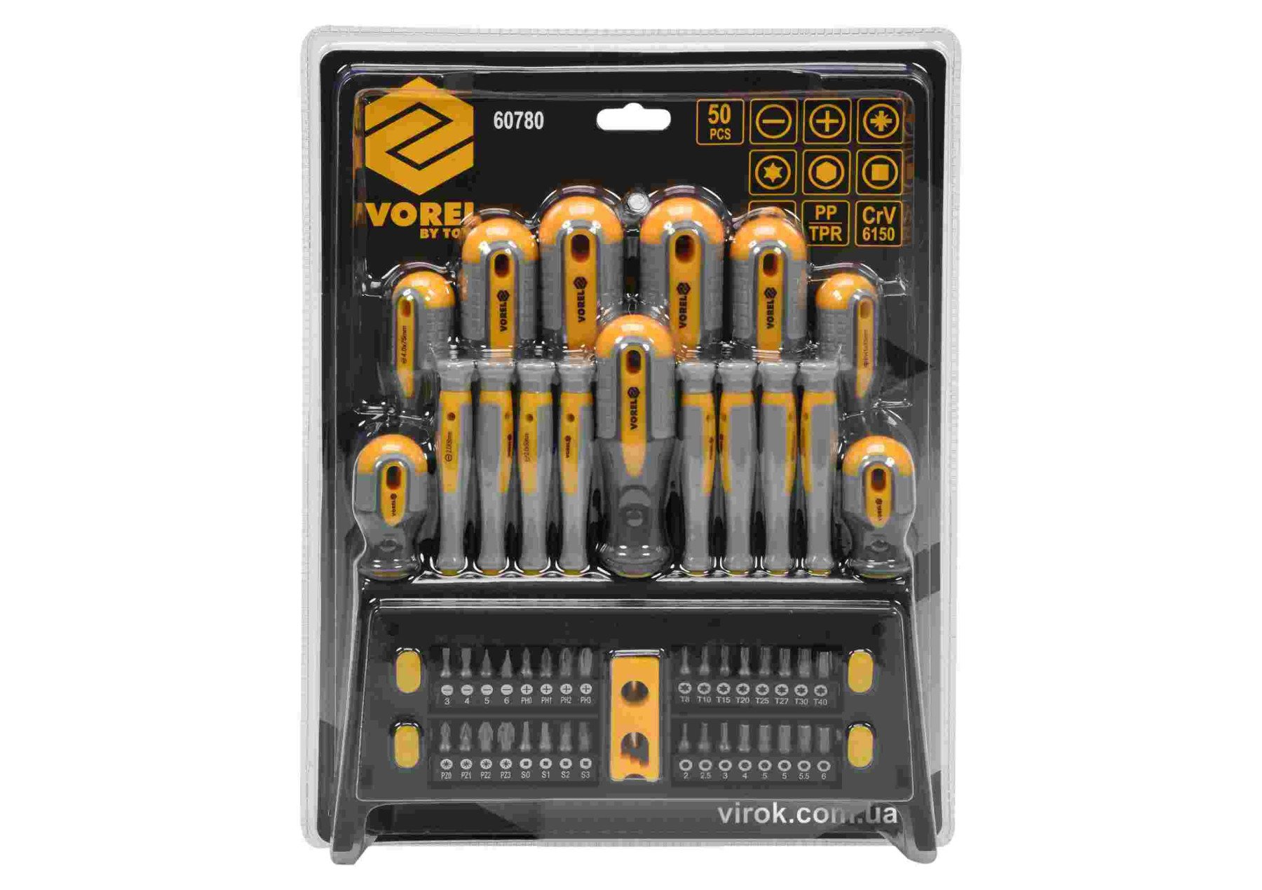 VOREL Набір викруток і викруткових насадок : Cr-V, 50 шт | 60780