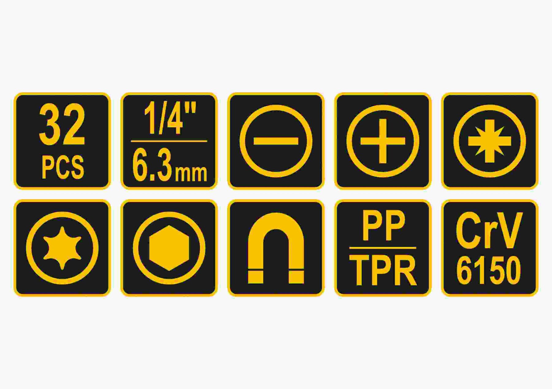 VOREL Набір викруток і викруткових насадок : Cr-V, 32 шт у футлярі | 60785
