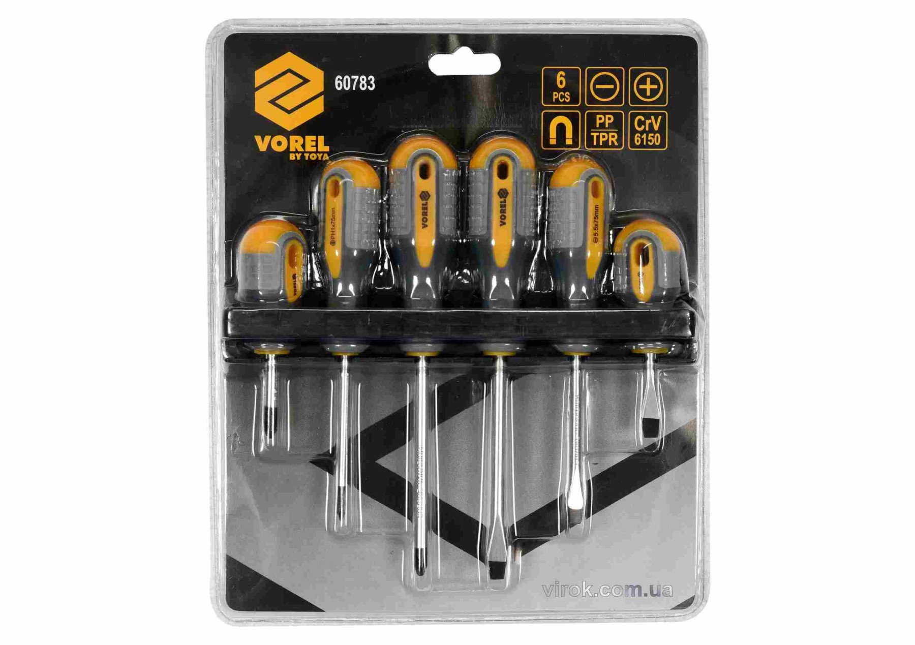 VOREL Набір викруток : SL6.5x38/5.5 x75/6.5 x100 мм, PH2 x 38/PH1x75/PH2 x100 мм, Cr-V, 6шт | 60783