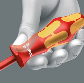 7 отверток VDE iSS Kraftform с зауженным стержнем и уменьшенным диаметром ручки для работы в тесном пространстве и с расположенными в глубине винтами и пружинными зажимами, с поштучной проверкой по стандарту IEC 60900. Поштучная проверка в водяной бане под напряжением 10000 В для безопасной работы на оборудовании с максимально допустимым напряжением 1000 В. Ручка Kraftform Plus для комфортной работы без появления на руках мозолей и волдырей. Твердые зоны ручки для высокой скорости работы, в то время как мягкие зоны ручки обеспечивают передачу больших моментов силы. Шестигранный край ручки для защиты от перекатывания отвертки на рабочем месте.