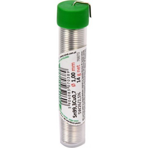 Припій без свинцю CYNEL, Ø1 мм, Sn99,3-Cu0,7 дротяний в капсулі з флюсом 14 г.