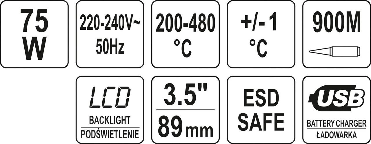 Паяльная станция YT-82456 выполнена по ESD-безопасной технологии, что гарантирует отсутствие накопления избыточного электростатического заряда на корпусе. Благодаря этому мы ограничиваем риск повреждения, например, чувствительных цепей SMD. Нагревается примерно за 25 секунд до рабочей температуры 350C.