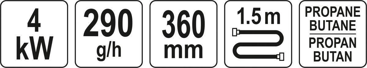 YATO Пальник газовий : l= 360 мм, до 4 кВт. 3 сопла і шланг- 1,5 м (пропан, бутан)