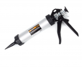 Пістолет для маси ущільнювача Polax, 300 мл. Модель закритого типу для видавлювання силікону з ємністю 300 мл. Використання пістолета дозволяє зробити процес подачі герметика рівномірним, з високим ступенем контролю. Інструмент складається з куркового механізму, металевого штовхача та туби зі сплаву алюмінію зі знімним напрямним соплом. Для зручності в корпусі інструменту передбачені отвори, що дозволяють підвішувати його у вибраному для зберігання місці.