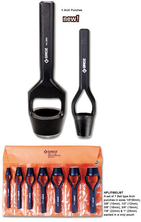 A set of 7 Bell type Arch punches in sizes