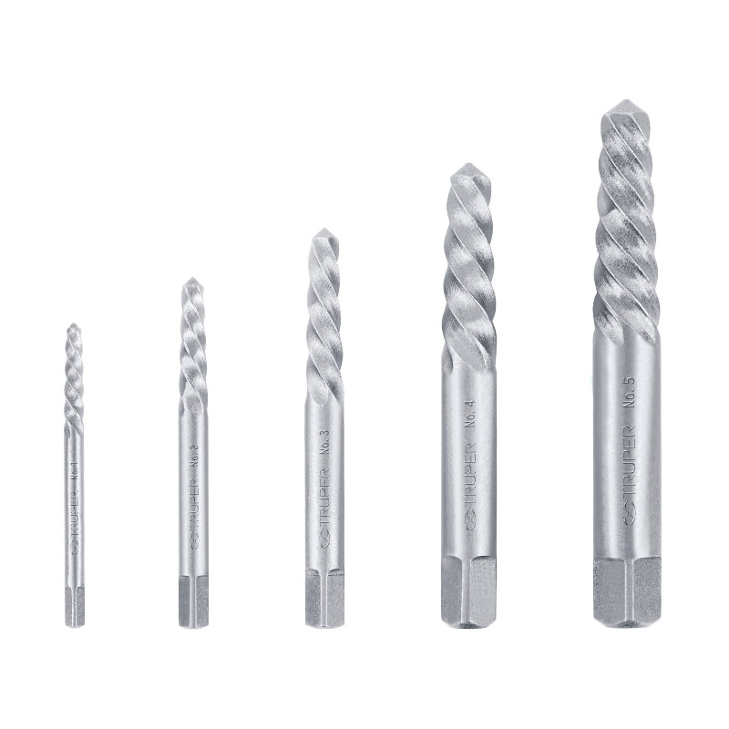 Набір із 5 гвинтових екстракторів для вилучення зламаних або вибитих болтів діаметром від 1/8" до 3/4".