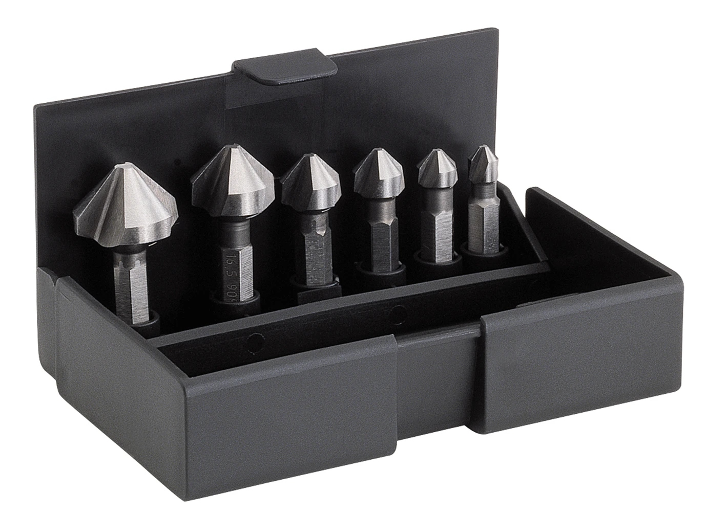 Набір зенковок-біт, 6,3-20,5 мм, 6 предметів, пластиковий кейс Набір зенковок-біт 67300 призначений для обробки просвердлених отворів під головки болтів, гвинтів та заклепок. Зенковки застосовуються в ручних, а також в ручних електро- та пневмоінструментах. Включає цілий перелік інструменту в кейсі, зручному для зберігання та транспортування. Назва Параметри Кількість Зенківки-біти 6,3 - 8,3 - 10,4 12,4 – 16,5 – 20,5 мм 6 шт. Кейс пластиковий 1шт.