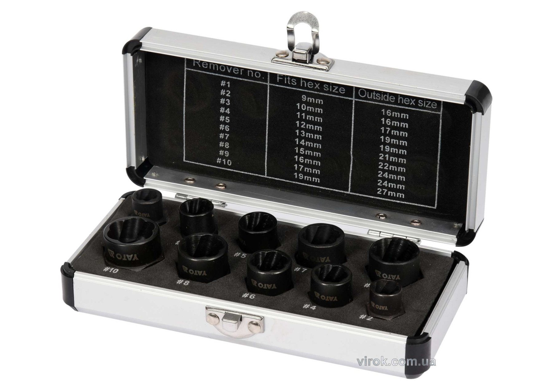 YATO Набір екстракторів для зломаних головок болтів і гайок YATO, з квадр.- 3/8". 10 Од. | YT-06031