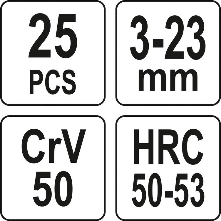YATO Набір екстракторів для видалення зломаних гвинтів: Ø= 3-23 мм, 25 шт