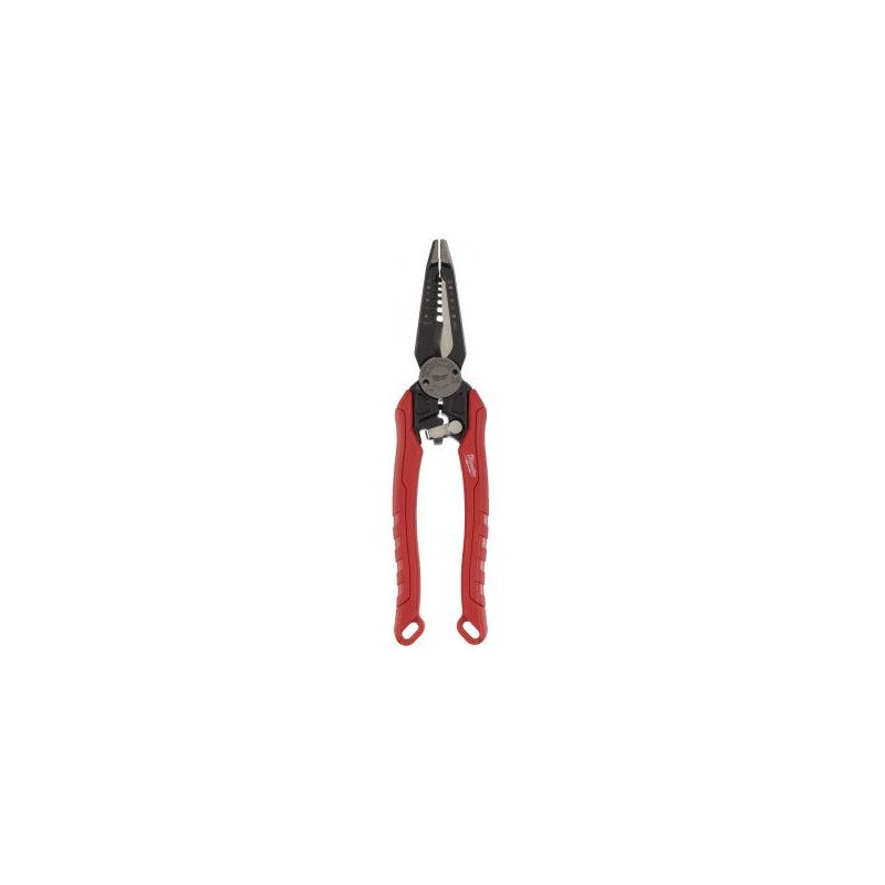 Комбіновані кусачки для зачистки дротів 7 в 1 (заміна для 48229079) Особливості Зняття ізоляції; Розміри 0.75 мм², 1.0 мм², 1.5 мм², 2.5 мм², 4.0 мм², 6.0 мм² Різання проводів: Вигнуті та загартовані лазером ріжучі кромки Пасатижі. Підходять для захоплення та згинання проводів Зняття внутрішньої фаски на трубах діаметром 12 – 25 мм Гнучка петель на дротах. Вбудований механізм для згинання петель на проводах Вбудований обтискач клем Вбудований різак для болтів Фіксація пружини однією рукою: Легка фіксація пружини інструмента однією рукою дозволяє зберігати інструмент у закритому стані. Пружина стиснута для легкого початку роботи Захист від іржі для тривалого терміну служби інструменту. Комплект поставки: Комбіновані кусачки для зачистки дротів Milwaukee 7 в 1 - 1 шт. Постачається в блістері Вага (гр) 270 Кількість (шт) 1 Загальна довжина (мм) 230 Здатність зачистки (мм²) 0.75/1/1.5/2.5/4/6 Макс. товщина різу кабелю з міді або алюмінію (мм) 6 Макс. товщина різу м'якого кабелю 220 H/мм² (мм) 7 Макс. товщина різу кабелю середньої твердості 1800 H/мм² (мм) 2.5