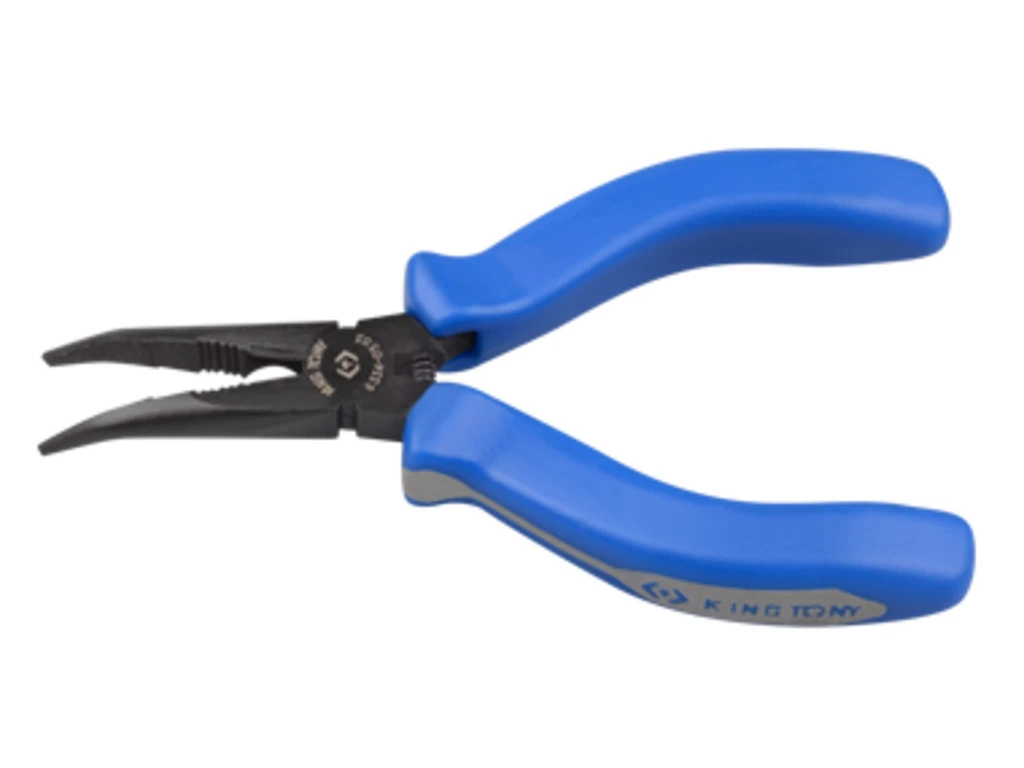 Пасатижі тонкі. ніс загнуті 125 мм Пасатижі King Tony загнуті з тонким носом призначені для роботи з важкодоступними вузлами та механізмами, а також обслуговування електронних плат технічного обладнання, де використання пінцетів не результативно. Ручний інструмент із тонким загнутим носом вважається вузькоспеціалізованим аксесуаром, однак у побуті подібні пасатижі популярні серед електронників та автолюбителів. За функціональністю, пасатижі King Tony із загнутим носом не поступаються класичному інструменту. Надійний прихват металоконструкцій, робота з кріпленнями та різьбовими з'єднаннями та перекушування дроту роблять виріб затребуваним на ринку. Міцність та надійність пасатижам гарантує інструментальна сталь, легована кобальтом, нікелем та вольфрамом, для покращення фізичних властивостей металу. Ріжучі кромки виробник піддав загартування, посиливши жорсткість конструкції. Перевага пасатиж King Tony із загнутим тонким носом в універсальності. Призначений для вузькоспеціалізованих послуг ручний інструмент здатний виконувати інші завдання, конкуруючи з класичними плоскогубцями. М'які накладки на рукоятки покращують хват, а пружина назад економить час власнику на відкриття робочих поверхонь.