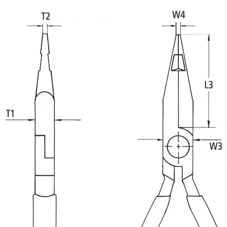 27 01 160 Плоскі круглогубці з ріжучими кромками в середній частині для захоплення та розрізання окремих провідників у кабельних джгутах. З ріжучими кромками у середній частині для м'якого дроту. плоскокруглі губи. Захоплюючі поверхні з зубцями. - : 9,5mm - : 3,0mm - Tip Thickness (D1): 2,0mm - : 47,0mm - Ширина головки (W3): 16,5mm