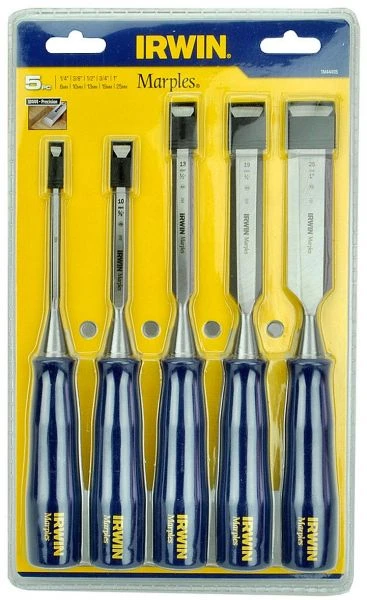 Набір стамесок М444 у блістері 5 шт.(6,10,13,19,25 мм) IRWIN Набір стамесок серії М444 призначений для теслярських та столярних робіт. Рукоятки ергономічної форми розроблені для ідеального керування інструментом та роботи з дерев'яною киянкою. Повністю коване цільне сталеве лезо для структурної цілісності та тривалого терміну служби. Скошені краї для полегшення роботи у вузьких кутах. Комплектуються ковпачком на кінчик леза, оскільки заточені і дуже гострі. Склад набору: Стамеска М444 - 6мм Стамеска М444 - 10мм Стамеска М444 - 13мм Стамеска М444 - 19мм Стамеска М444 - 25мм Блістерне пакування.