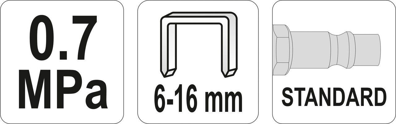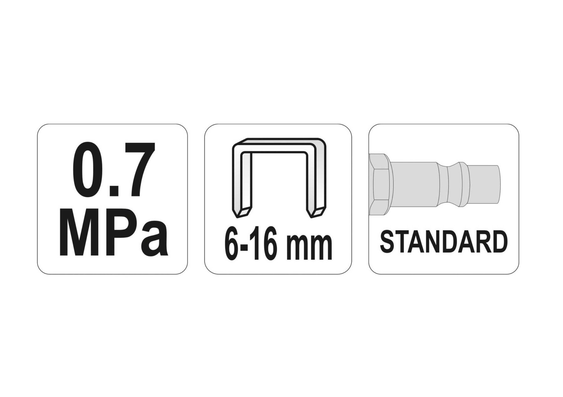 YATO Степлер пневматичний : P= 7 Bar, для скоб h= 6-16 мм, w= 12,7 мм