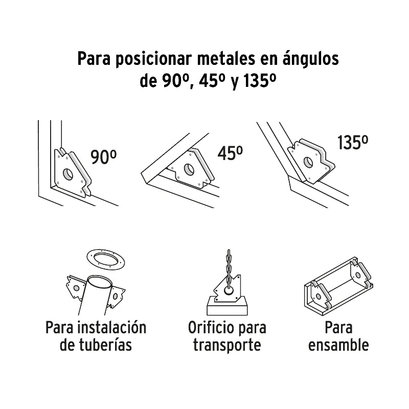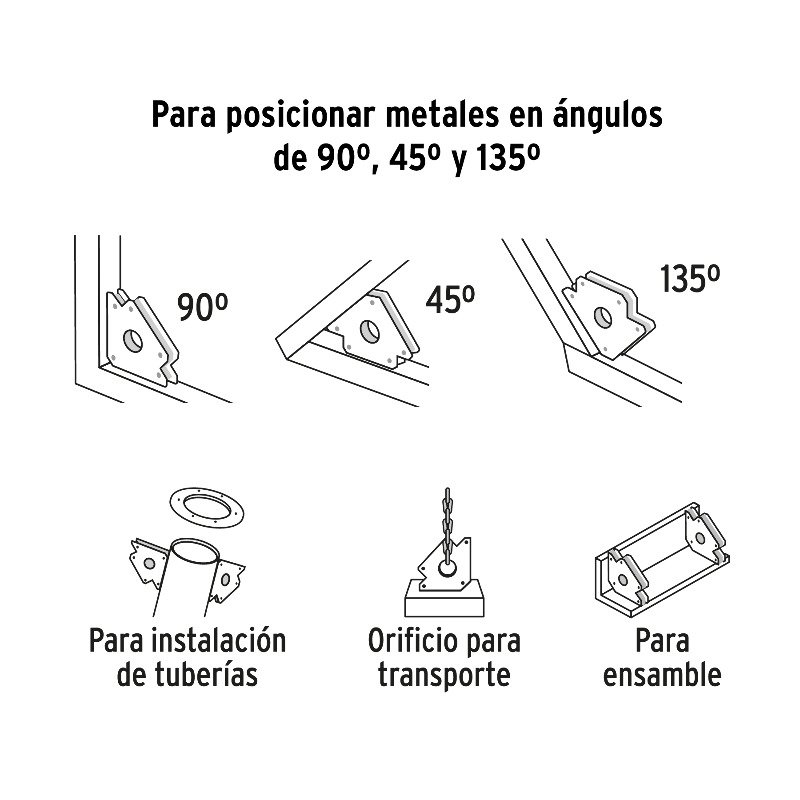 Інструмент забезпечує точне позиціонування металевих деталей під кутами 45°, 90° і 135°, та надійно утримує металеві деталі різної ваги завдяки вантажопідйомності до 25 кг, що вдвічі більша за традиційний кутник Truper.