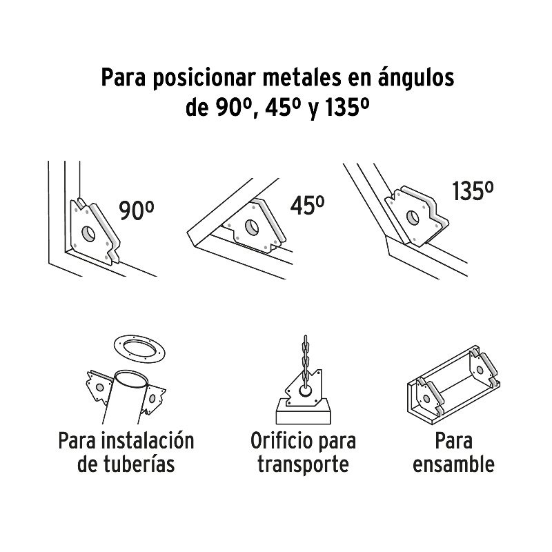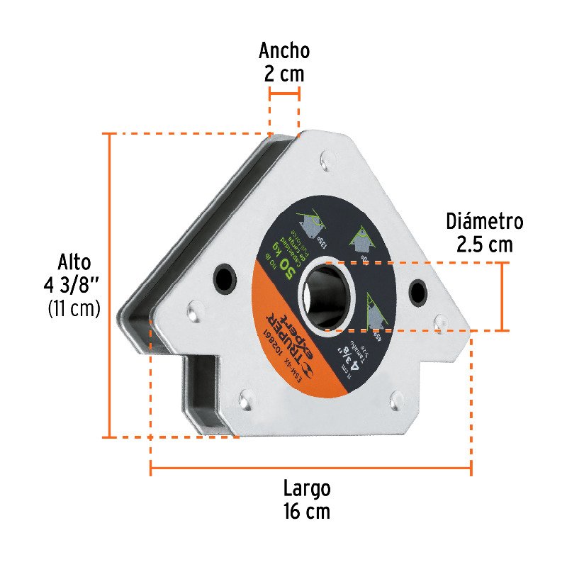 Інструмент забезпечує точне позиціонування металевих деталей під кутами 45°, 90° і 135°, та надійно утримує металеві деталі різної ваги завдяки вантажопідйомності до 50 кг, що вдвічі більша за традиційний кутник Truper.