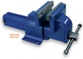 - Стальная конструкция с встроенной наковальней, массивной подвижной губкой и винтом большого диаметра.