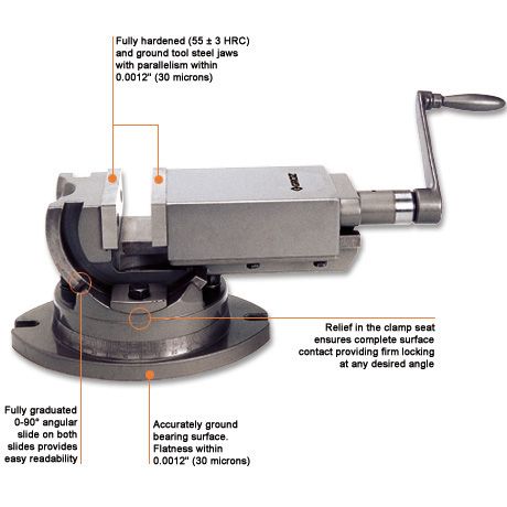 - Предназначены для обработки деталей под различными углами. Угол наклона устанавливается по шкале, диапазон углов наклона 0-90°, поворотное основание со шкалой на 360°.