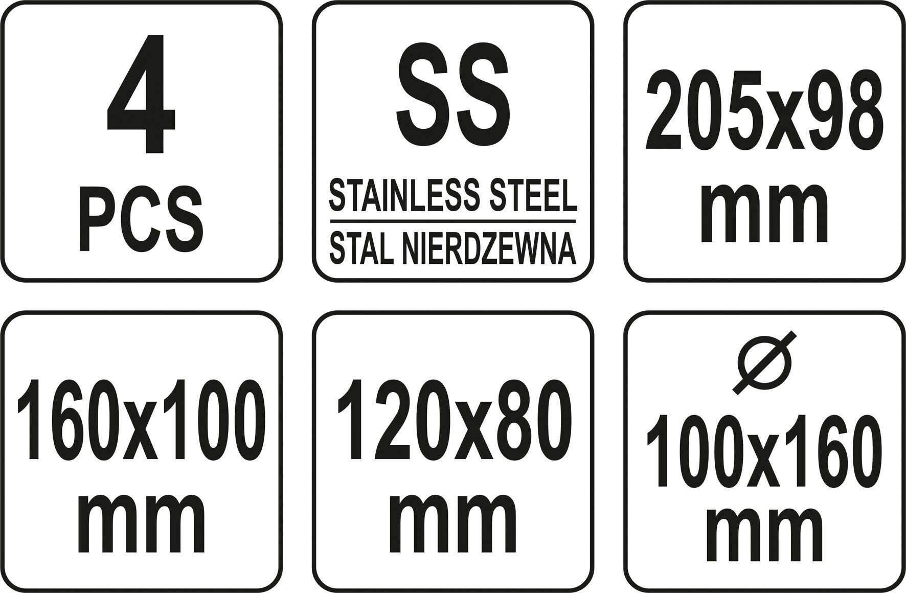 YATO Скребки столярні з нержавійочої сталі : 205х98 мм, 160х100 мм, 120х80 мм, 100х160 мм, 4 шт