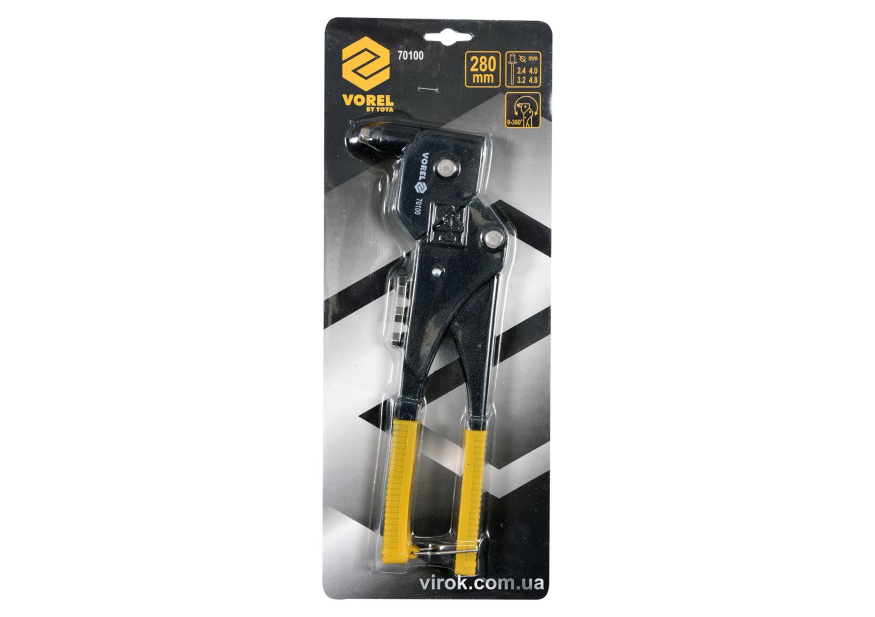 Заклепочник VOREL з обертовою головкою, l= 280 мм, на заклепки 2,4;3,2;4,0;4,8 [12/24]