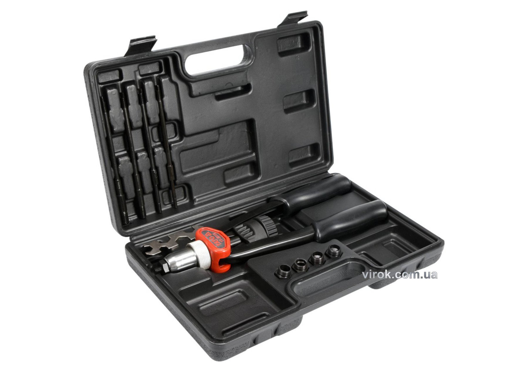 В комплекті пластиковий кейс і 5 нітогайок (заклепок) з різьбою M5, M6, M8, M10, М12.