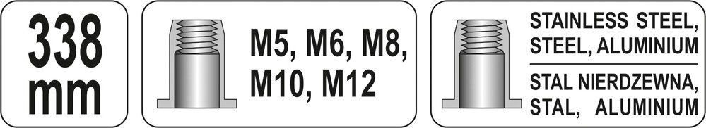 Заклепочник YATO для заклеп. гайок М 5-12 мм 2-ручний, l=338 мм [6]