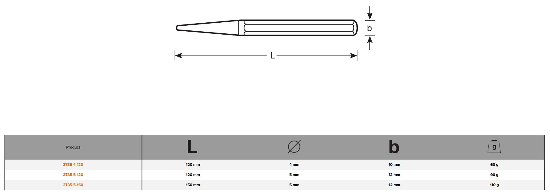 Кернер BAHCO 120 мм, бойок 4 мм (3735-4-120)