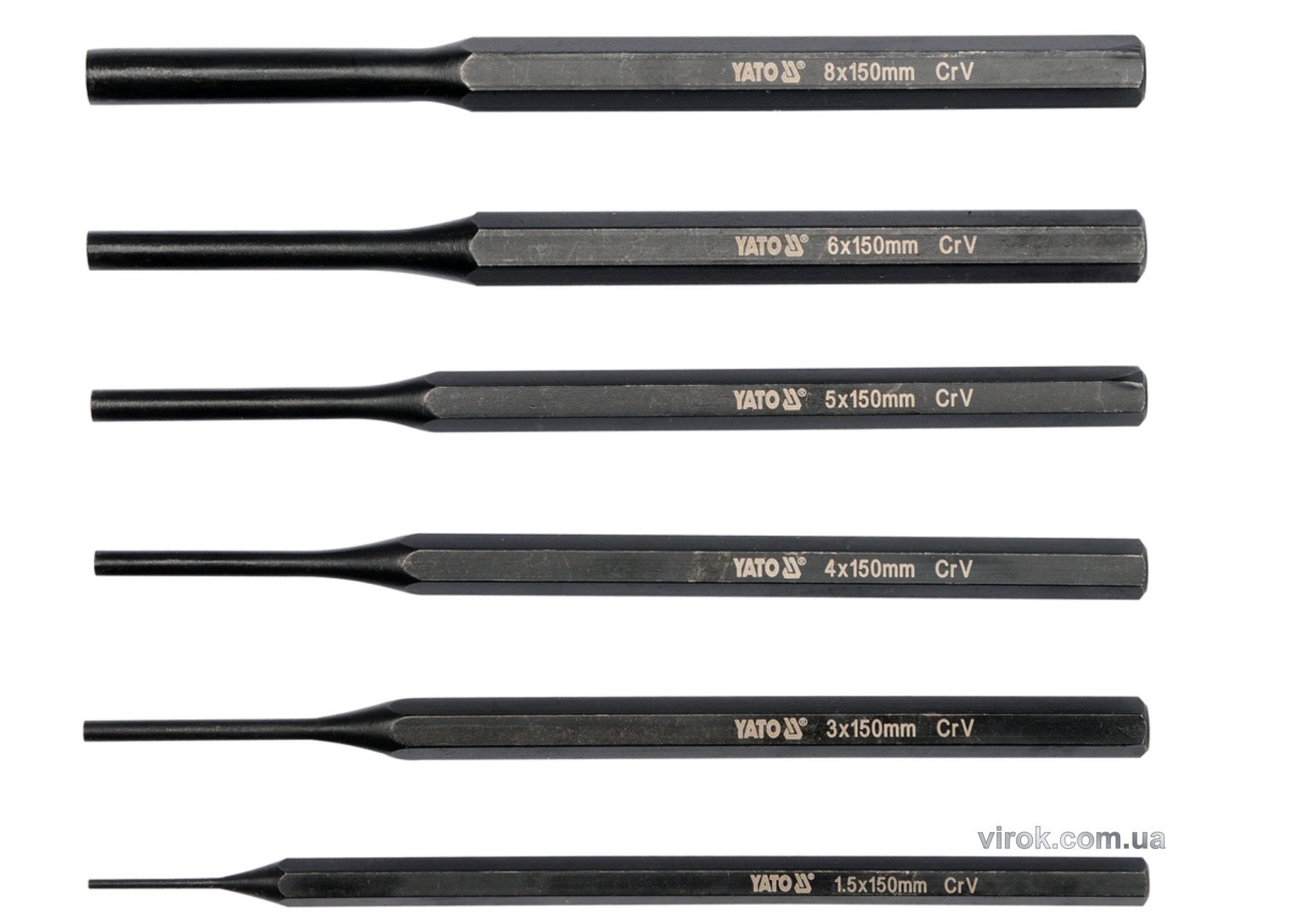 YATO Пробійники слюсарні : Ø=1.5; 3; 4; 5; 6; 8 мм, l=150 мм, Набір. 6 шт.