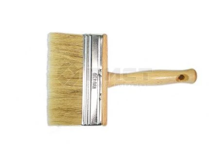Кисть-макловица изготовлена из удлиненной натуральной свиной щетины. Деревянное основание, металлический бандаж, деревянная лакированная ручка. Применение: очистка и размывка поверхностей, нанесение побелки, грунтовочных и клеевых составов. Используется со всеми видами лакокрасочной продукции.