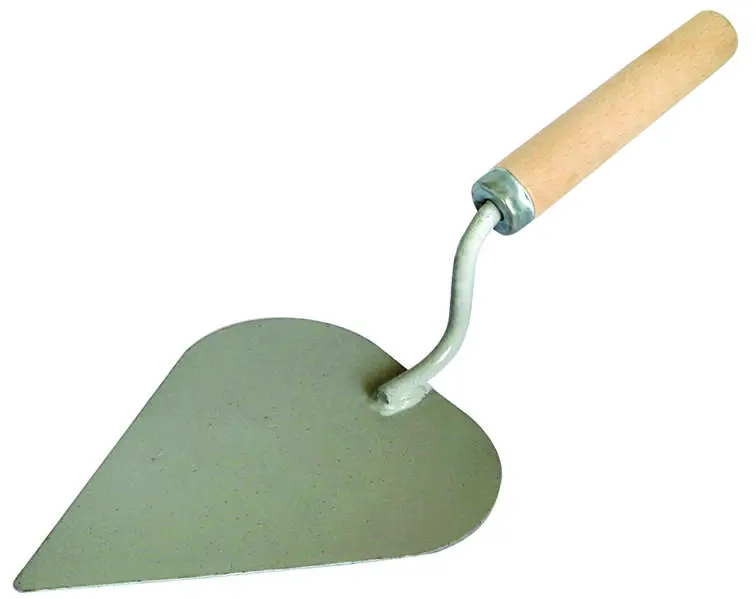 Кельма штукатурная сердцевидной формы со стальным полотном с антикоррозийным покрытием. Кельма штукатурная имеет изогнутую ручку и крашеную деревянную рукоятку для удобной работы с инструментом. Кельма штукатурная представлена ??в двух размерах 165х135мм и 190х155 мм. Кельма штукатурная используется при укладке кирпича или плитки, для укладки, перемешивания и наброски штукатурного или песчано-цементного растворов на поверхность, широко используется при проведении внутренней или внешней отделке помещений и различных зданий при проведении строительных работ.