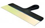 Шпатель с пластмассовой ручкой имеет лезвие, которое изготовлено ??из стального полотна. Шпатель имеет удобную пластмассовую ручку с отверстием для подвешивания. Шпатель служит для проведения штукатурных работ для нанесения, распределения и выравнивания шпаклевочных смесей при отделочных работах. Шпатель имеет ширину от 150 мм до 600 мм. Шпатель с шириной от 350 мм до 600 мм используется для фасадных работ. Шпатель используются при проведении штукатурных работ для нанесения, распределения и разравнивания строительных смесей по обрабатываемой поверхности во время проведения строительных работ.