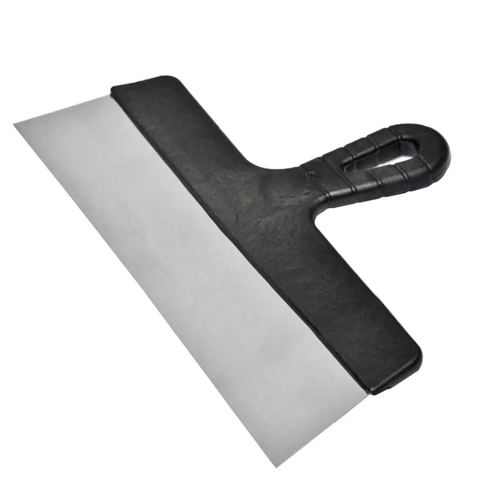 Шпатель с пластмассовой ручкой имеет лезвие, которое изготовлено ??из стального полотна. Шпатель имеет удобную пластмассовую ручку с отверстием для подвешивания. Шпатель служит для проведения штукатурных работ для нанесения, распределения и выравнивания шпаклевочных смесей при отделочных работах. Шпатель имеет ширину от 150 мм до 600 мм. Шпатель с шириной от 350 мм до 600 мм используется для фасадных работ. Шпатель используются при проведении штукатурных работ для нанесения, распределения и разравнивания строительных смесей по обрабатываемой поверхности во время проведения строительных работ.