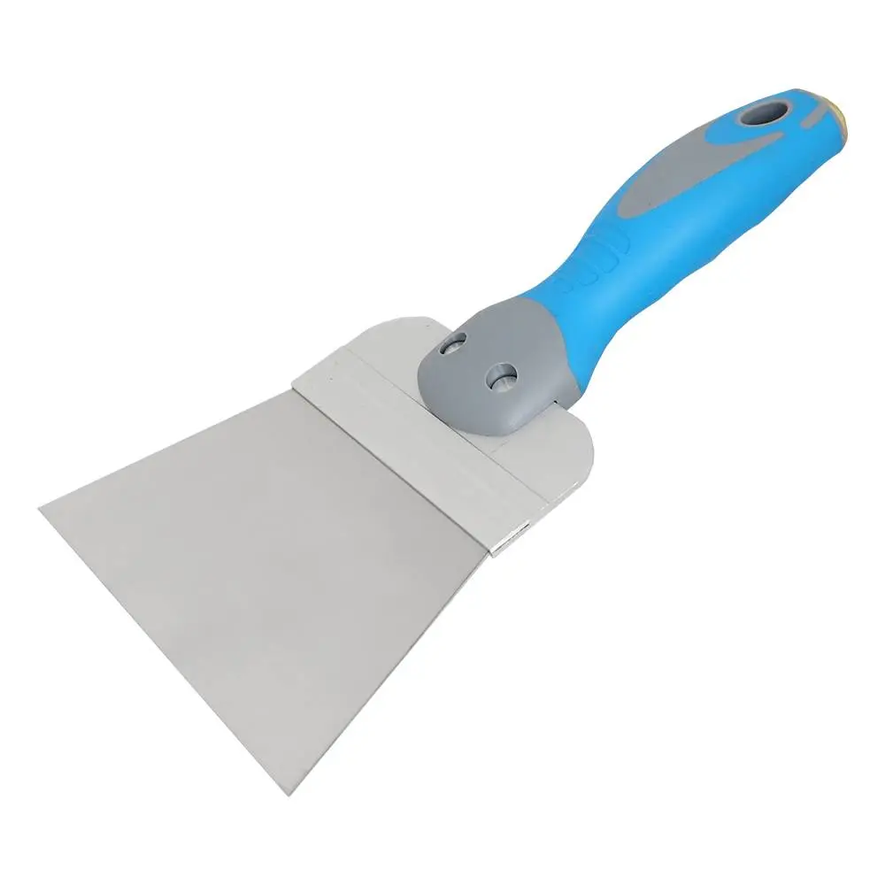 Шпатель має лезо, що виготовлено з полірованого сталевого полотна з нержавіючим покриттям. Шпатель має зручну двокомпонентну ручку з отвором для підвішування. Лезо надійно закріплено в алюмінієвому профілі заклепками. Шпатель використовується та служить для проведення штукатурних робіт для нанесення, розподілення та вирівнювання штукатурних та шпаклювальних сумішей при оздоблювальних роботах. Шпатель має ширину від 150 мм до 400 мм. Шпатель використовуються при проведенні штукатурних робіт для нанесення, розподілу та розрівнювання будівельних сумішей по оброблюваній поверхні під час проведення будівельних робіт.