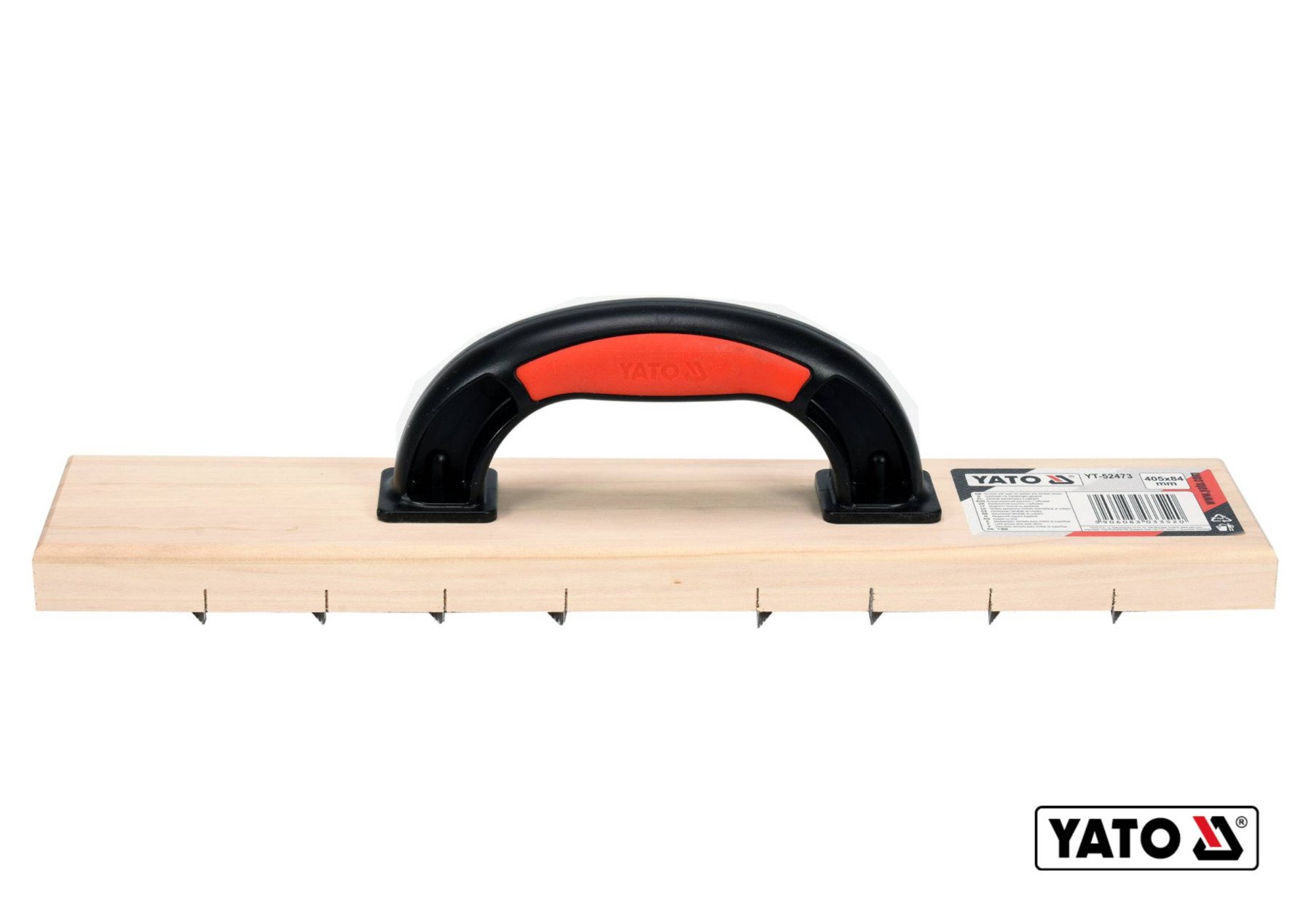 YATO Терка для зняття штукатурки дерев'яна з дрібними зубцями : 405 х 84 мм, пластикова ручка