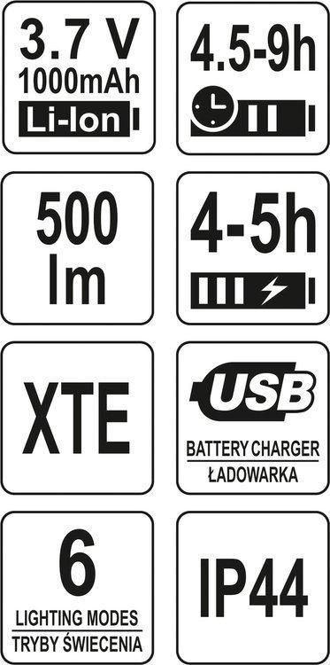 Світлодіодний акумуляторний налобний ліхтар від USB Yato YT-08596