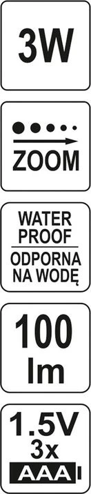 - 3 режима освещения: функция масштабирования, изменяющая луч света (базовый/экономичный/SOS).