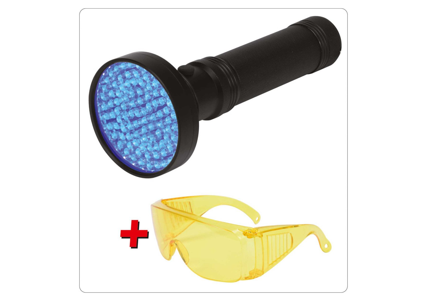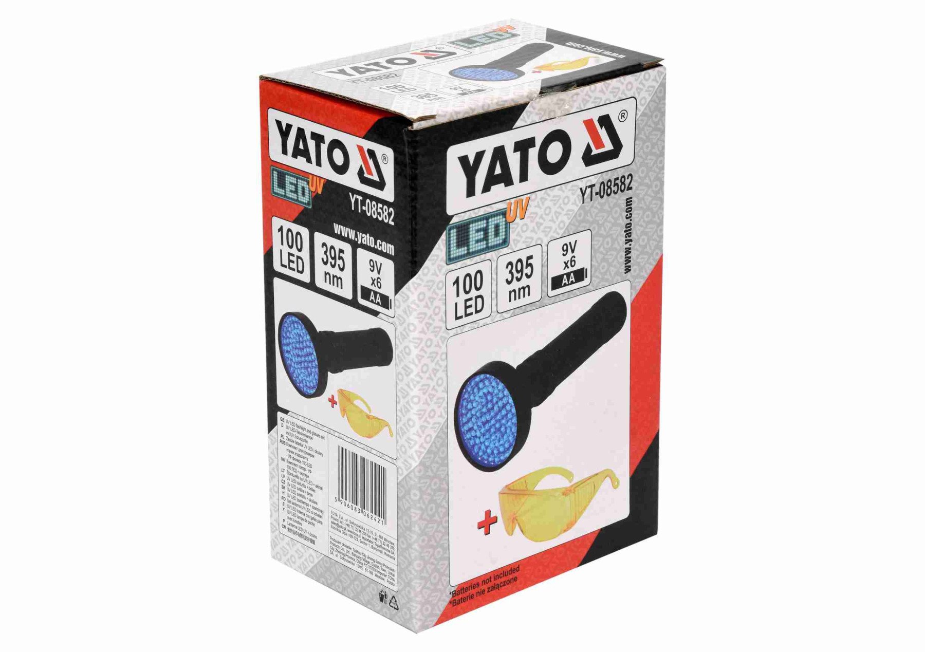 YATO Ліхтар ультрафіолетовий з окулярами, для перевірки банкнот : 100LED, 6 x AA, 395 нм