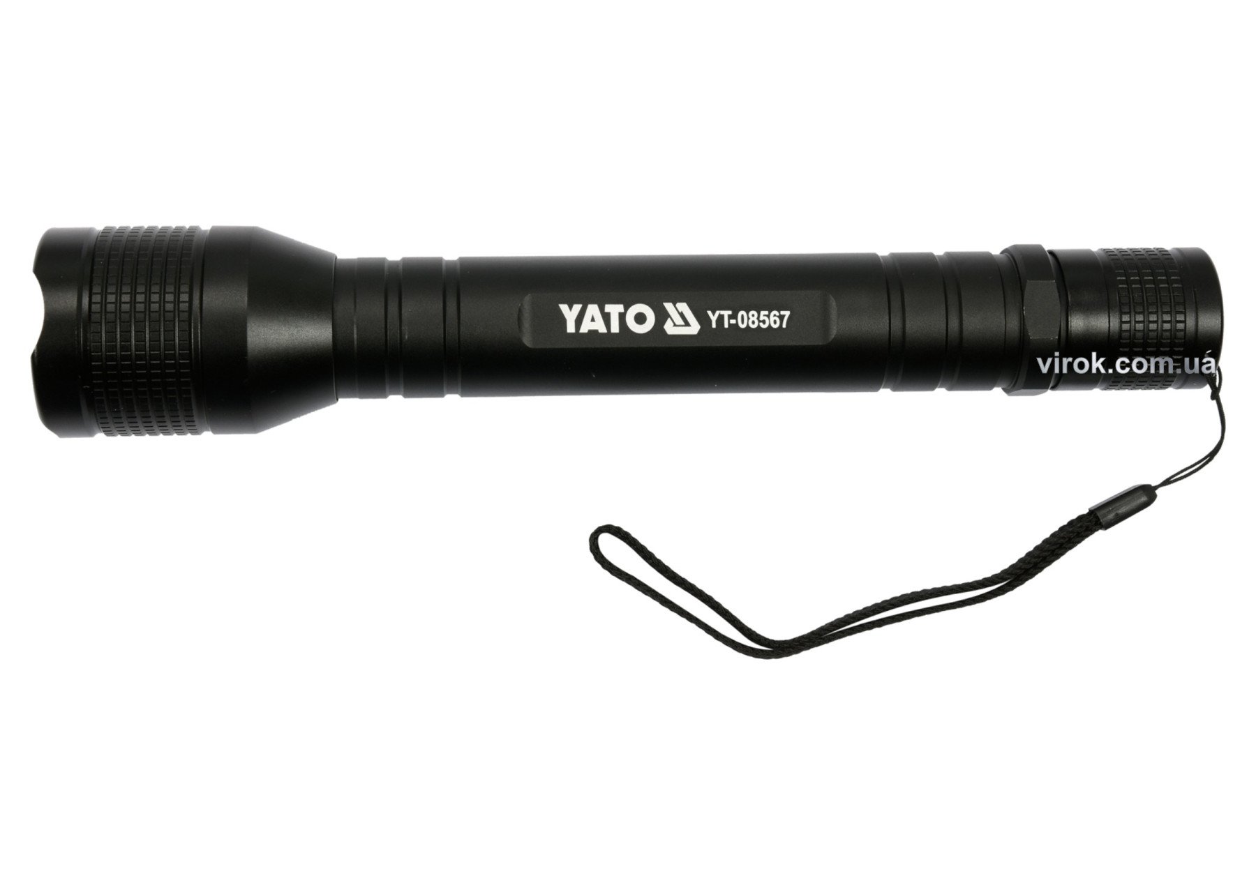 YATO Ліхтар світлодіодний (XPL CREE), Р= 10 Вт, Ф= 1000 lm; живлен- 4 х R14 батар. Ø= 46 мм x 254 мм